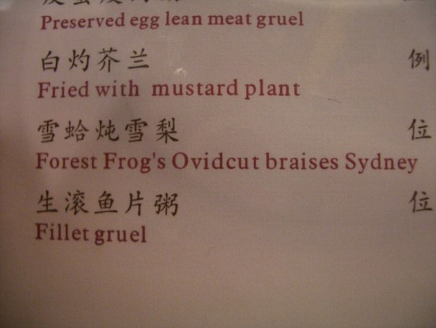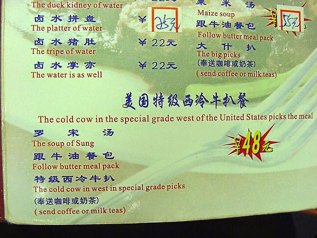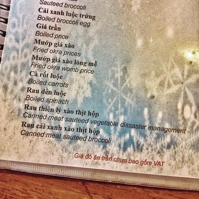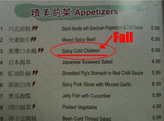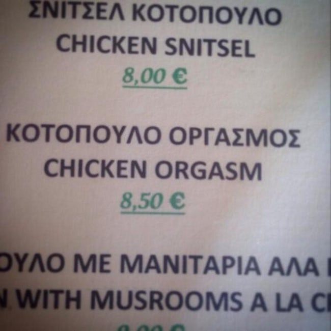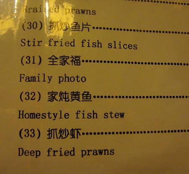 Worst Translations of Menu items to English